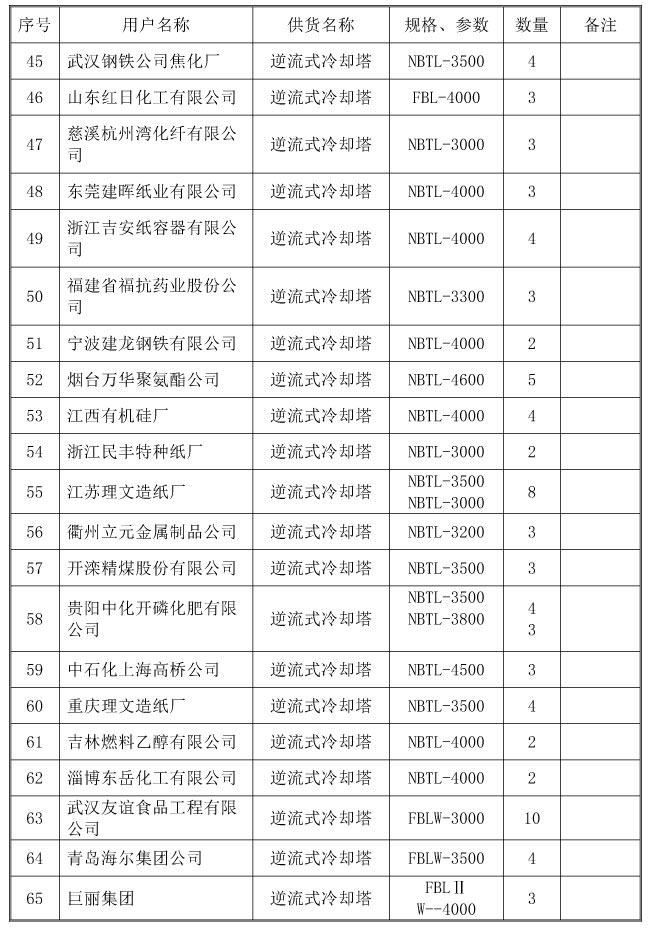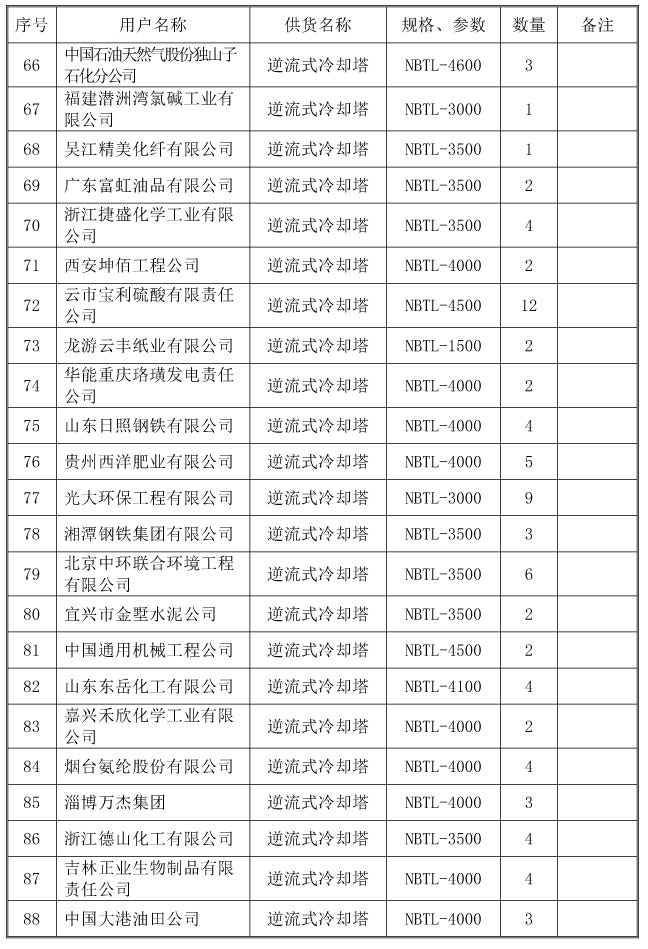 冷却塔业绩