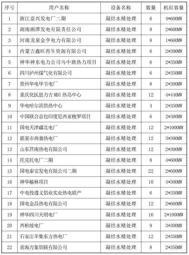 凝结水精处理业绩