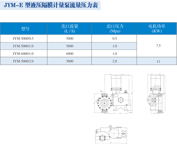 >> JYM-E型液压隔膜计量泵 最大流量为6000L/H,最高耐压2.0Mpa